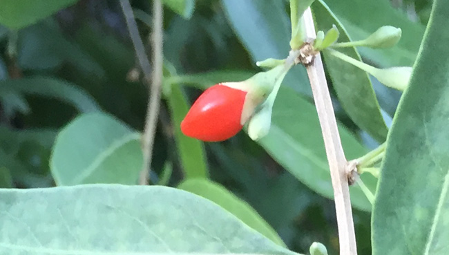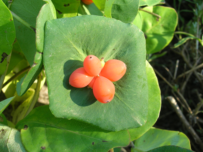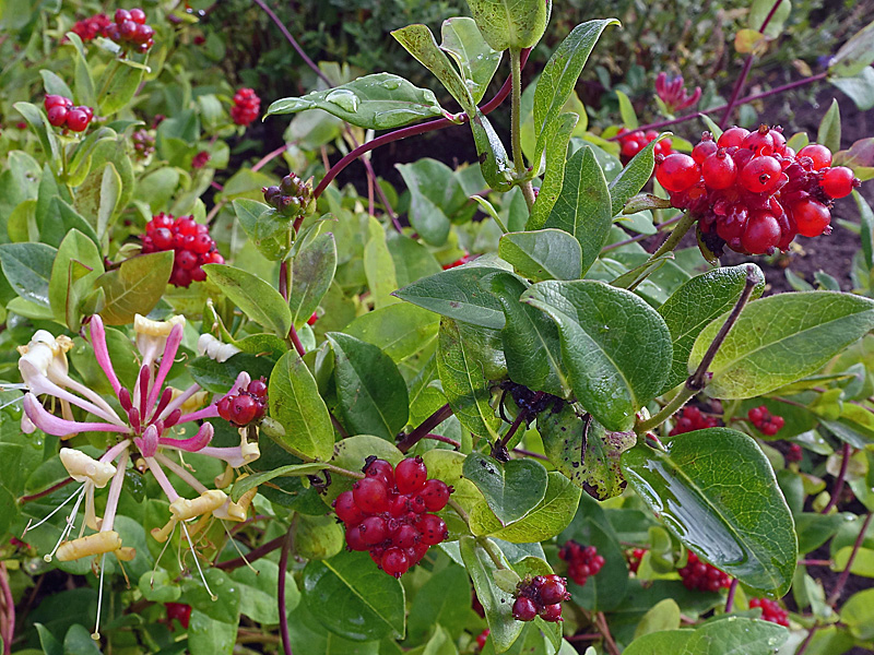 Lonicera periclymenum Växten innehåller irriterande ämnen. Bären lockar till förtäring, men förgiftningar hos barn är ovanliga. Symtom: Magbesvär (t.e...