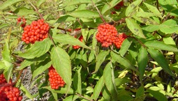 Sambucus racemosa Bären innehåller irriterande ämnen. De röda bären lockar till förtäring, men inga allvarliga förgiftningar är kända hos människa. Sy...