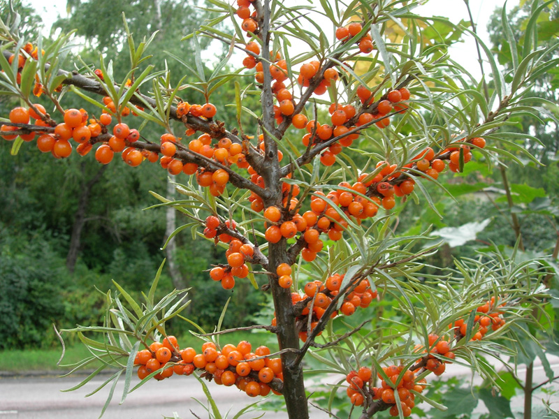 Elaeagnus-arter Bären är ofarliga. Släkt med havtornsväxter.