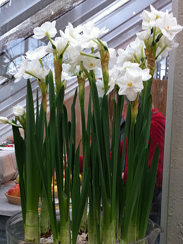 Narcissus papyraceus Växten, speciellt löken, innehåller irriterande ämnen. Förväxling har skett med ätliga lökar. Symtom: Magbesvär (t.ex. ont i mage...